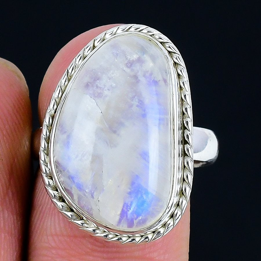 Moonstone Stone 925 Silver Engagement Bezel Statement Wife Birthday Ring US 8