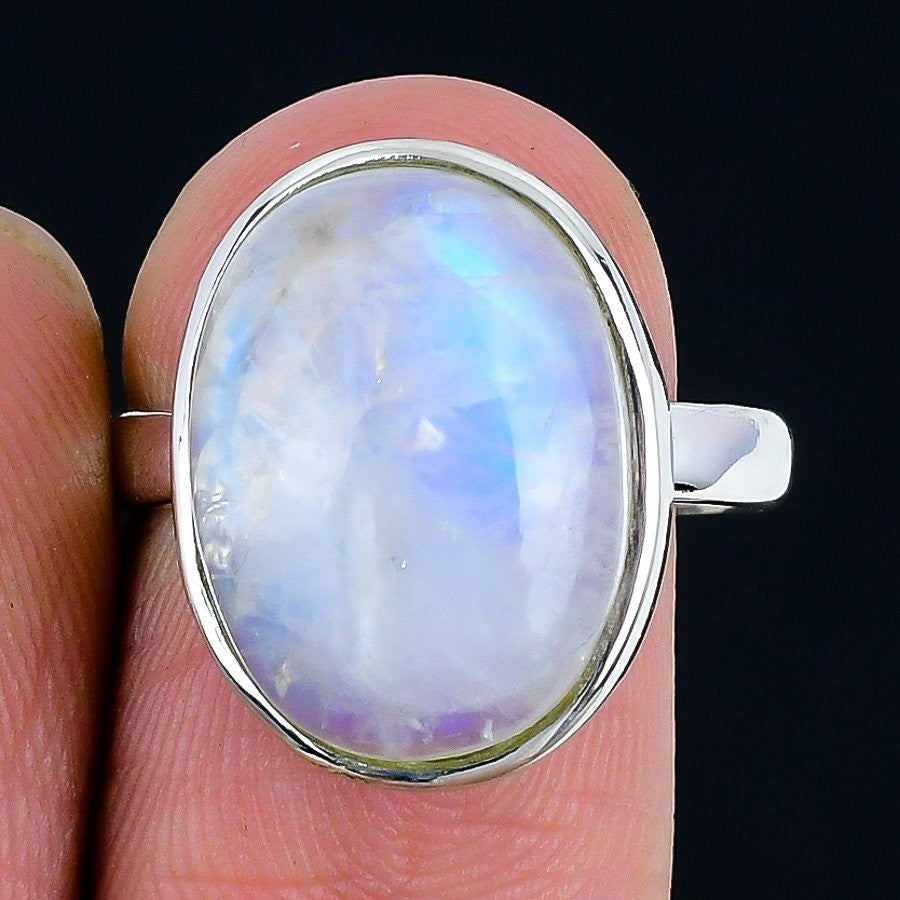 Moonstone Stone Bezel Statement Sisters Day Ring Size 8.5 Solid Sterling Silver