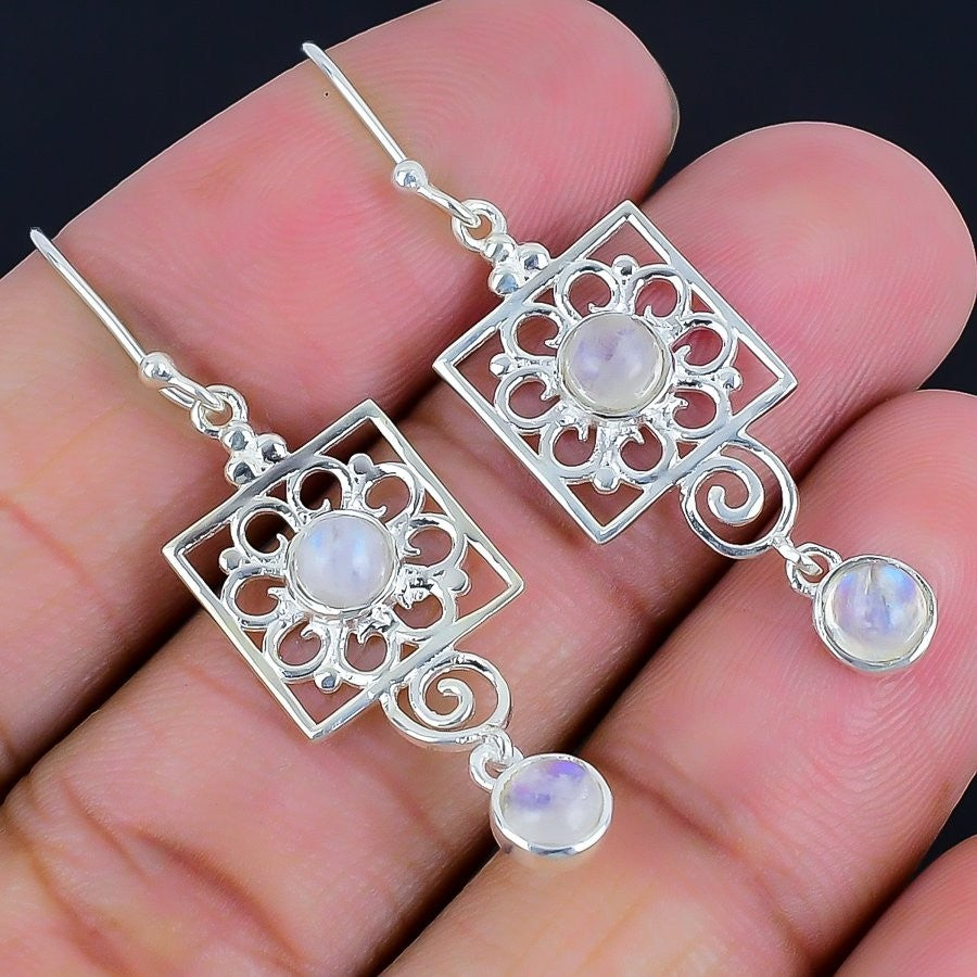 Elegant Moonstone Stone Solid Silver Dangle Drop Hook in 925