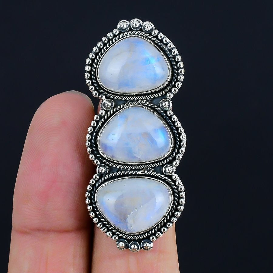 Moonstone Stone Solid Silver Daughters Day Boho Statement June Ring Jewelry US 8