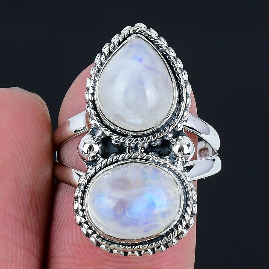 Moonstone Stone Sterling Silver Sister Statement Birthday June Ring Jewelry US 9