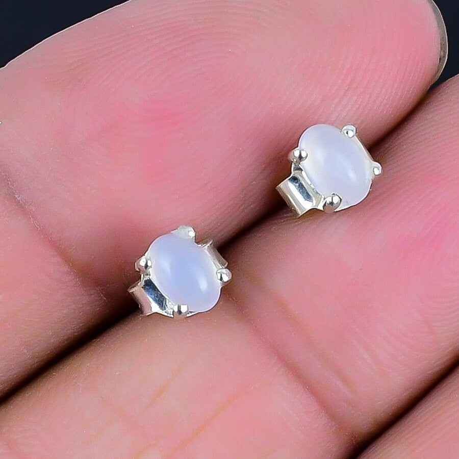 Moonstone Stone Wedding New Stud Post Daughter Earrings Jewelry 925 Solid Silver