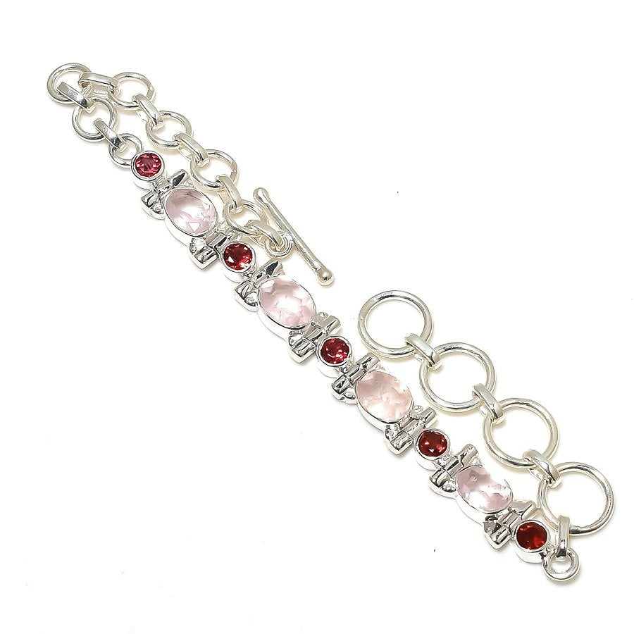 Morganite faceted Stone Sterling Silver Chain Engagement Wife Bracelet Jewelry