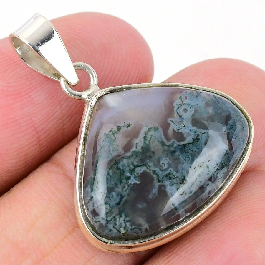 Moss Agate Stone 925 Sterling Silver Engagement Sisters Gift New Pendant Jewelry