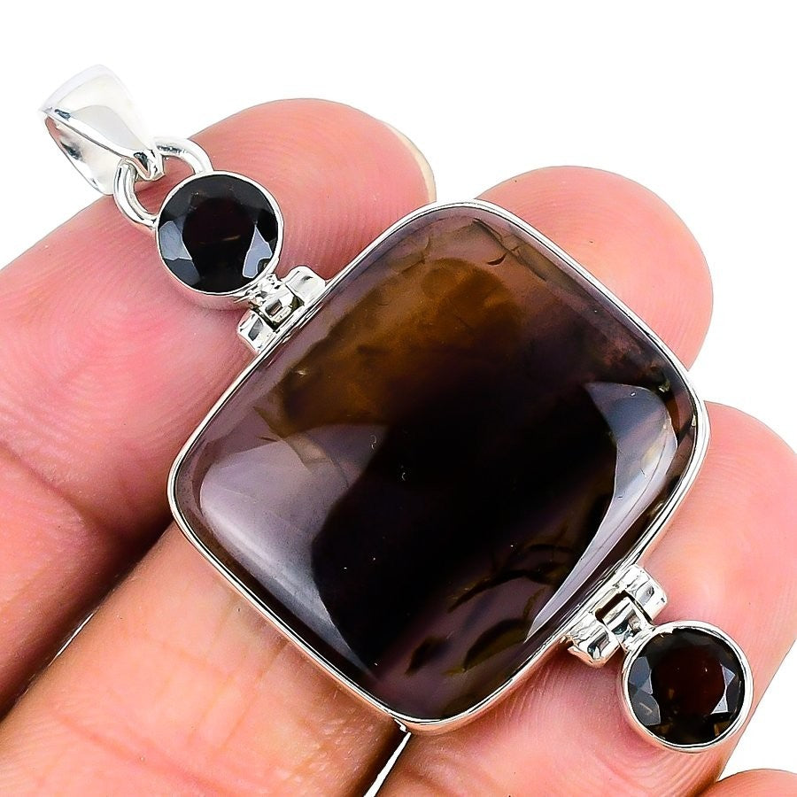 Moss Agate Stone Wedding Wife Unique Birthday Pendant Jewelry 925 Solid Silver