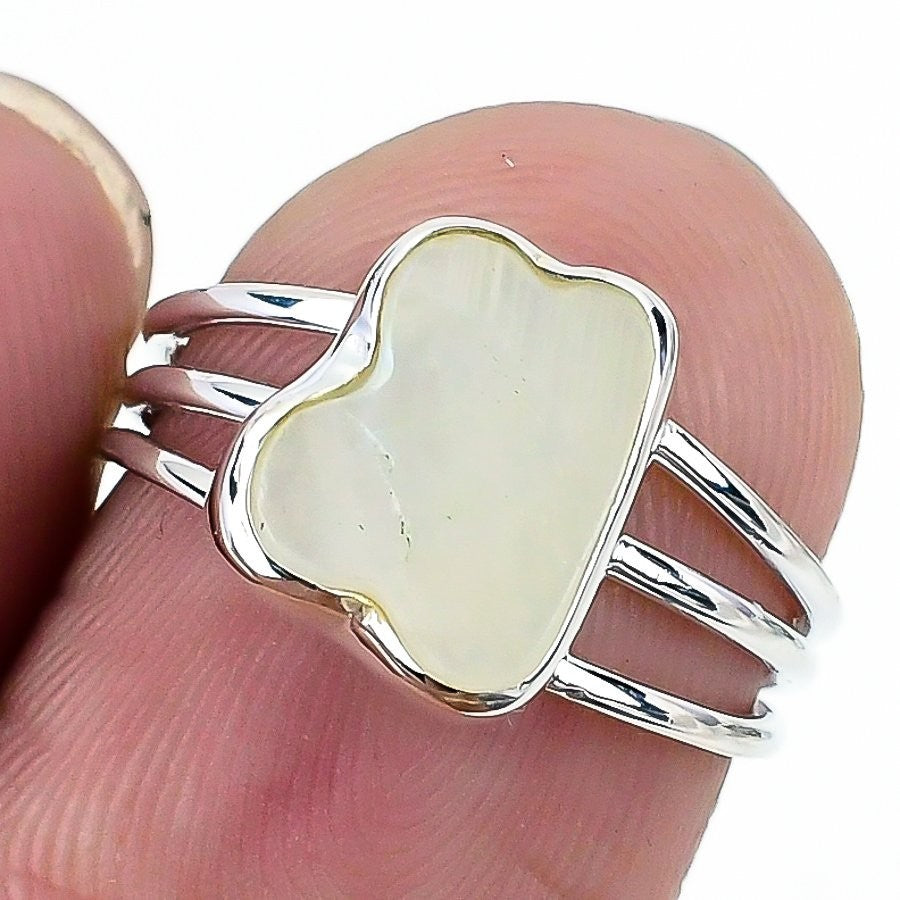 Mother Of Pearl Stone Sister Cluster Engagement Boho Ring Size 6.5 Solid Silver