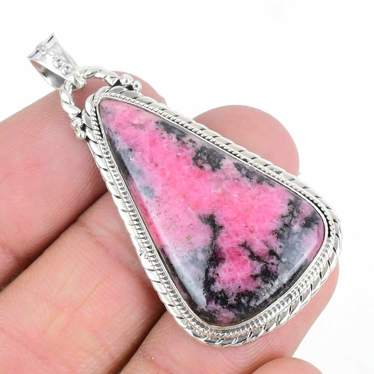 Mothers day Deal Heart Chakra Natural Rhodonite 925 Solid Silver Pendant Jewelry
