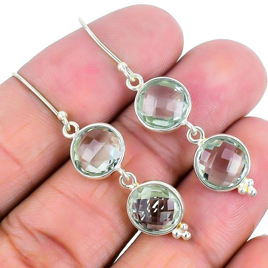 Mothers day Sale Green Amethyst Stone Drop Dangle Hook Earrings 925 Solid Silver