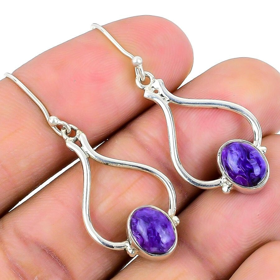 Mothers day Sale Russian Charoite Stone 925 Silver Dangle Daughter Boho Earrings
