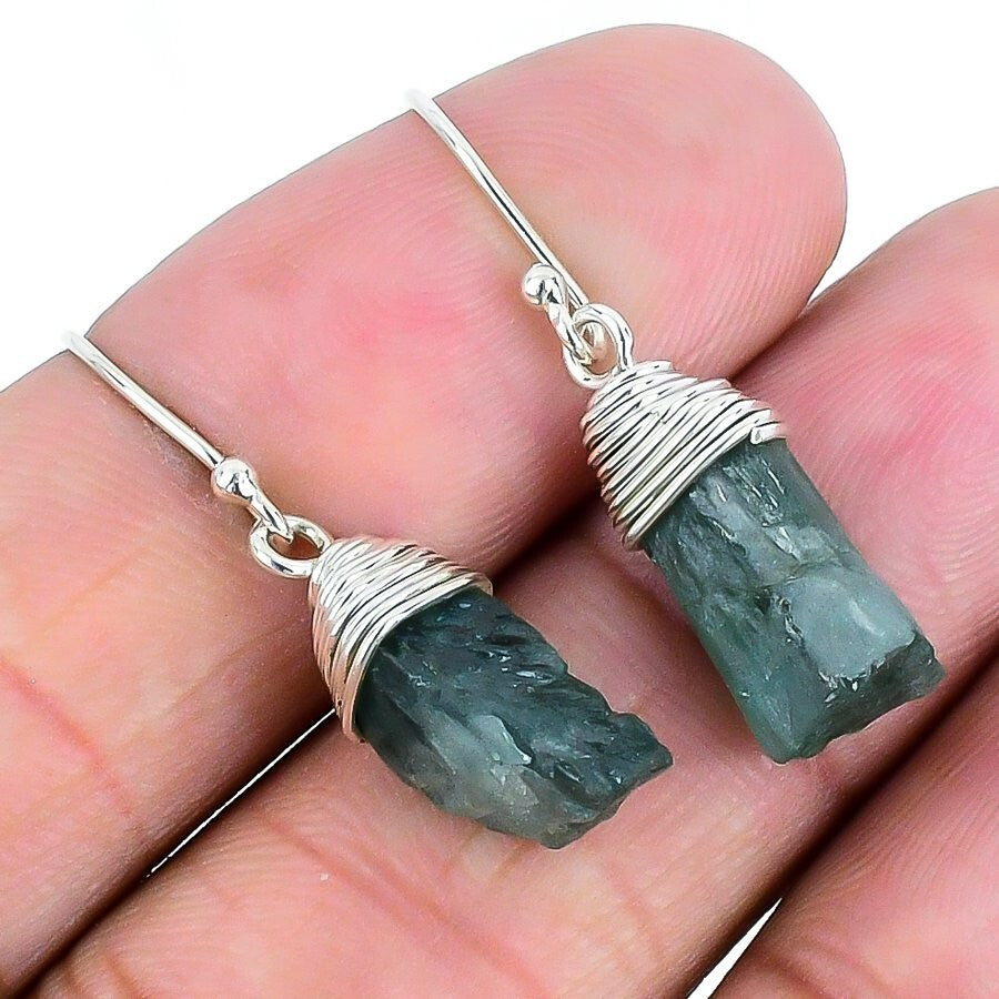 Mothers day Sale Tourmaline Rough Stone 925 Solid Silver Drop Earrings Jewelry