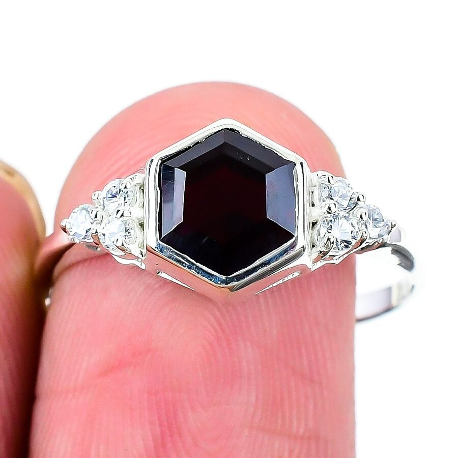 Mozambique Garnet Gemstone 925 Solid Silver Ethnic Wife Statement Trendy Ring