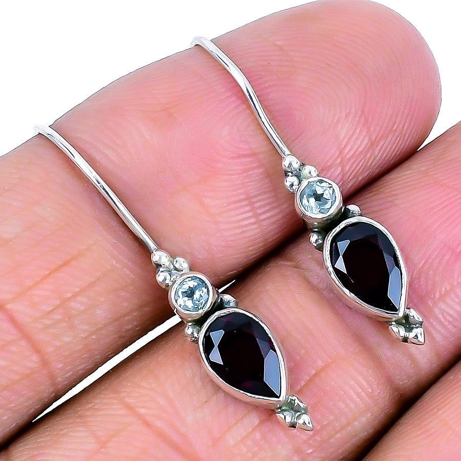 Mozambique Garnet Stone 925 Sterling Silver Hook Dangle Drop Earrings Jewelry