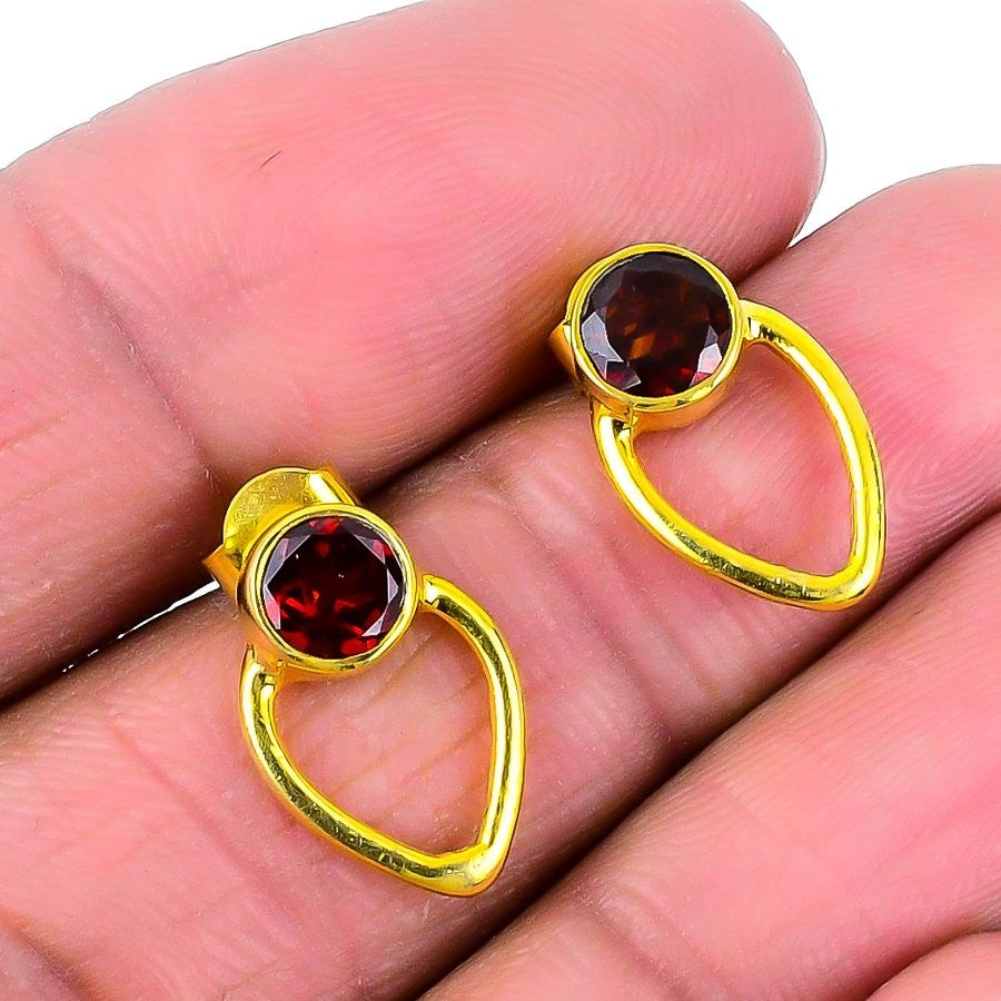 Mozambique Garnet Stone Birthday Stud Post New Earrings Jewelry 925 Solid Silver