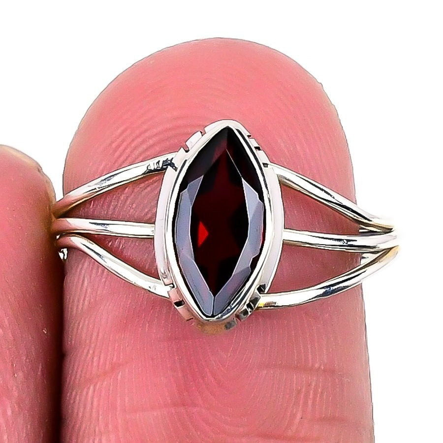 Mozambique Garnet Stone Statement Mother January Ring Solid Sterling Silver US 7