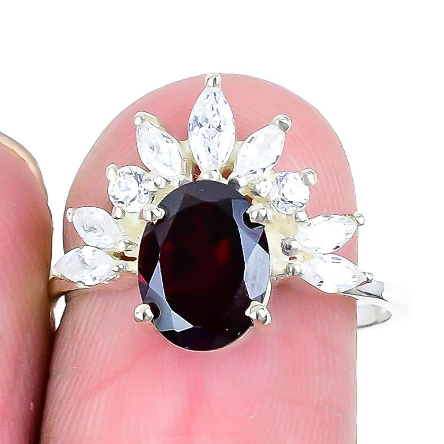 Elegant Mozambique Garnet Stone Sterling Silver Engagement C