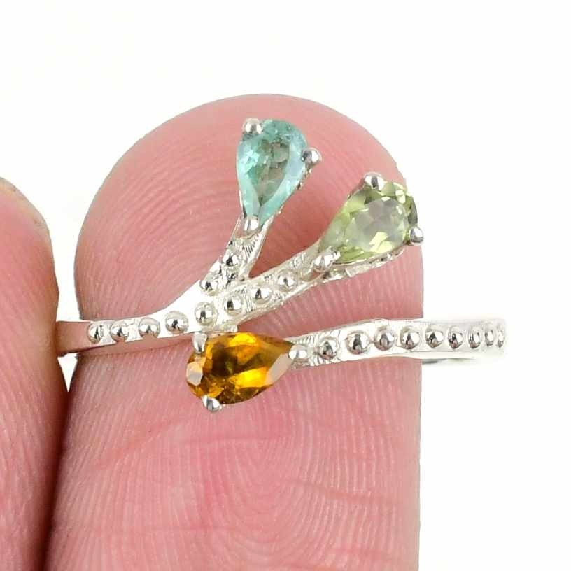 Elegant Multi Tourmaline Gemstone 925 Sterling Silver Cluste