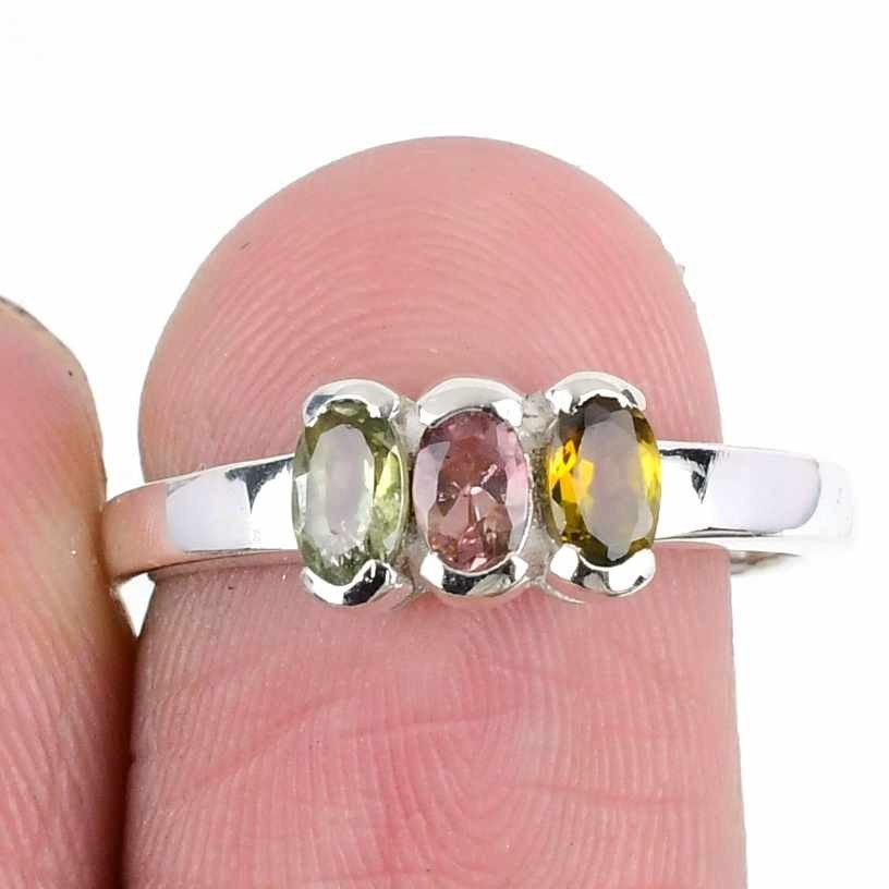 Multi Tourmaline Gemstone Cluster Sister Ring Jewelry Size 8 925 Solid Silver