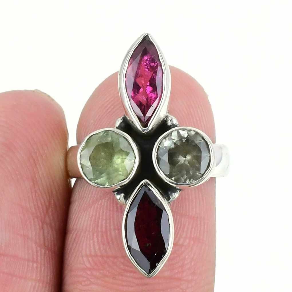 Multi Tourmaline Gemstone Solid Sterling Silver Cluster Wife Ring Jewelry Size 6