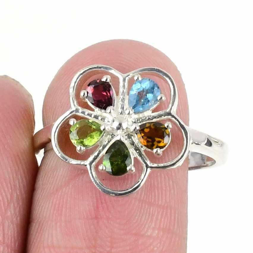 Multi Tourmaline Gemstone Solid Sterling Silver Wedding Wife Cluster Ring Size 9