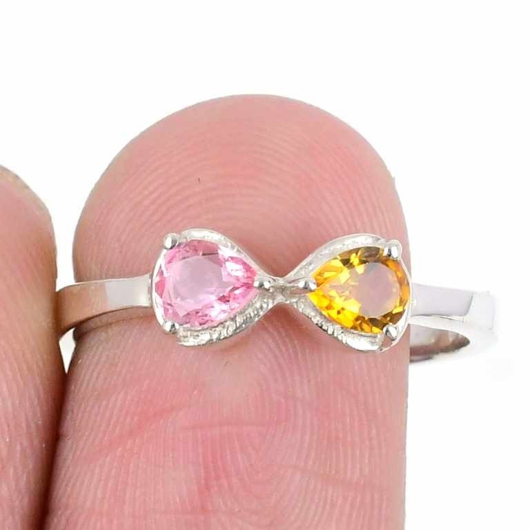 Multi Tourmaline Gemstone Sterling Silver Mother Cluster Engagement Ring Size 9