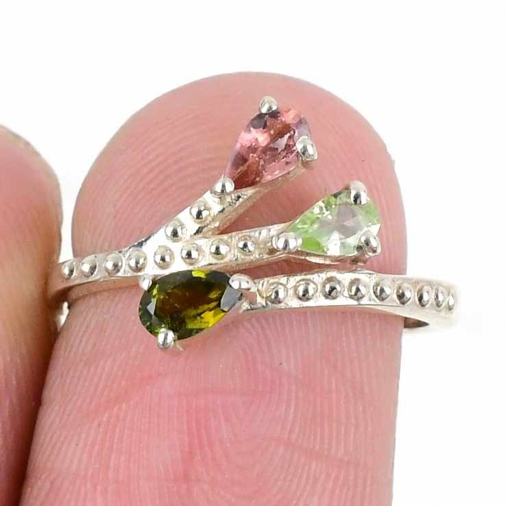 Elegant Multi Tourmaline Stone 925 Sterling Silver Engagemen