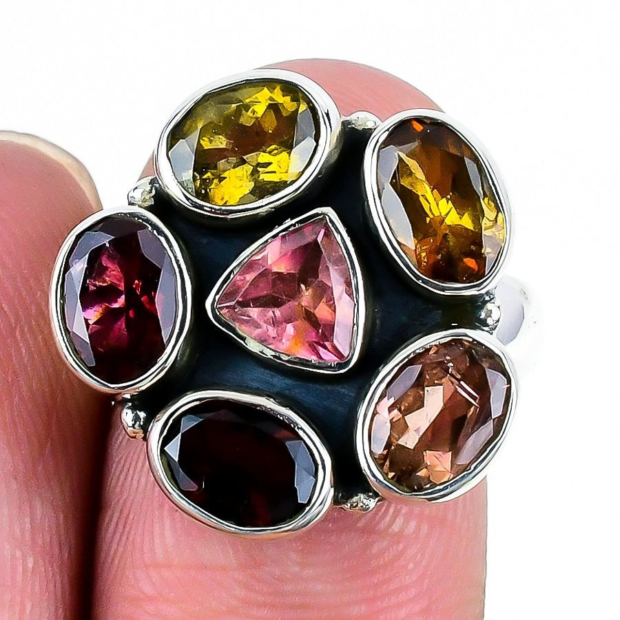 Multi Tourmaline Stone Mother Statement Wedding Ring Jewelry Solid Silver US 7