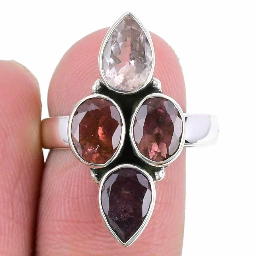 Multi Tourmaline Stone Solid Sterling Silver Wife Cluster Ring Jewelry Size 8.5