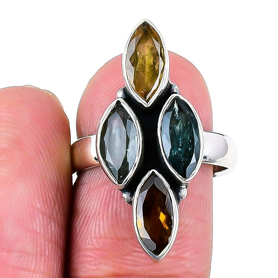Elegant Multi Tourmaline Stone Wife Statement Boho Ring in 9