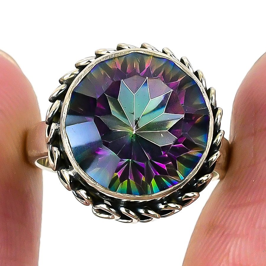 Mystic Rainbow Topaz Gemstone 925 Solid Sterling Silver Jewelry Ring Size 7