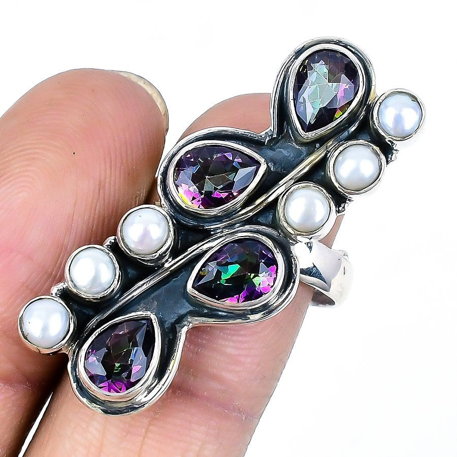 Mystic Rainbow Topaz Stone 925 Sterling Silver Statement Artisan Ring Jewelry