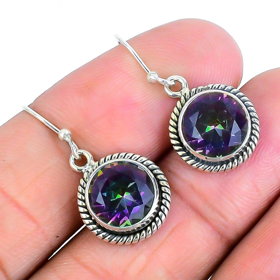 Mystic Rainbow Topaz Stone Sterling Silver Dangle Drop Birthday Earrings Jewelry