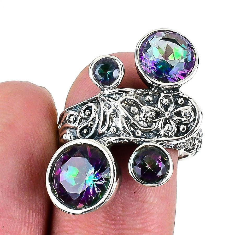 Mystic Topaz Gemstone 925 Silver Statement Birthday Wedding Ring Jewelry Size 8