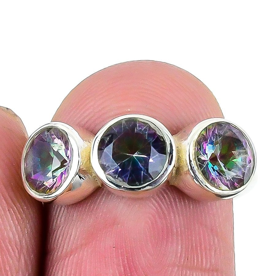 Mystic Topaz Gemstone Sister Statement Trendy Ring Jewelry Sterling Silver US 7