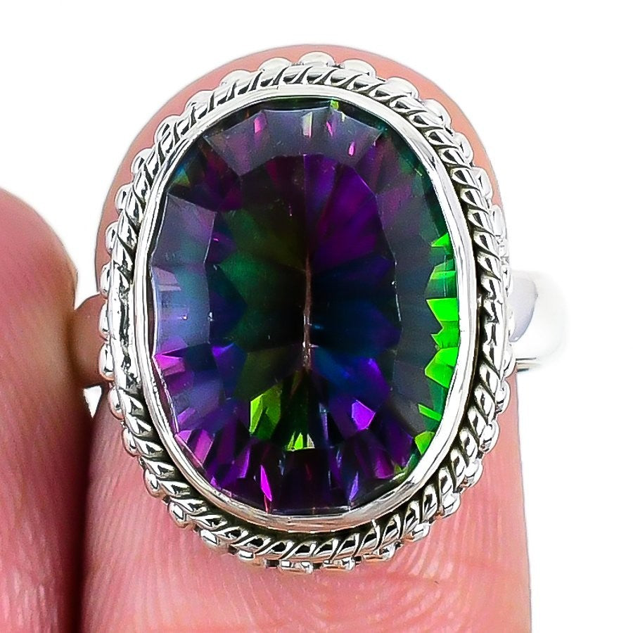 Mystic Topaz Gemstone Stackable Mother Channel Set Ring Jewelry 925 Silver US 7