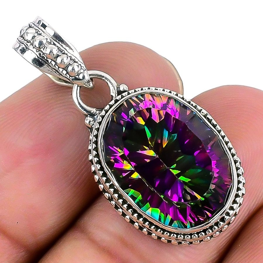 Mystic Topaz Gemstone Sterling Silver Bezel Sister Ethnic Trendy Pendant Jewelry