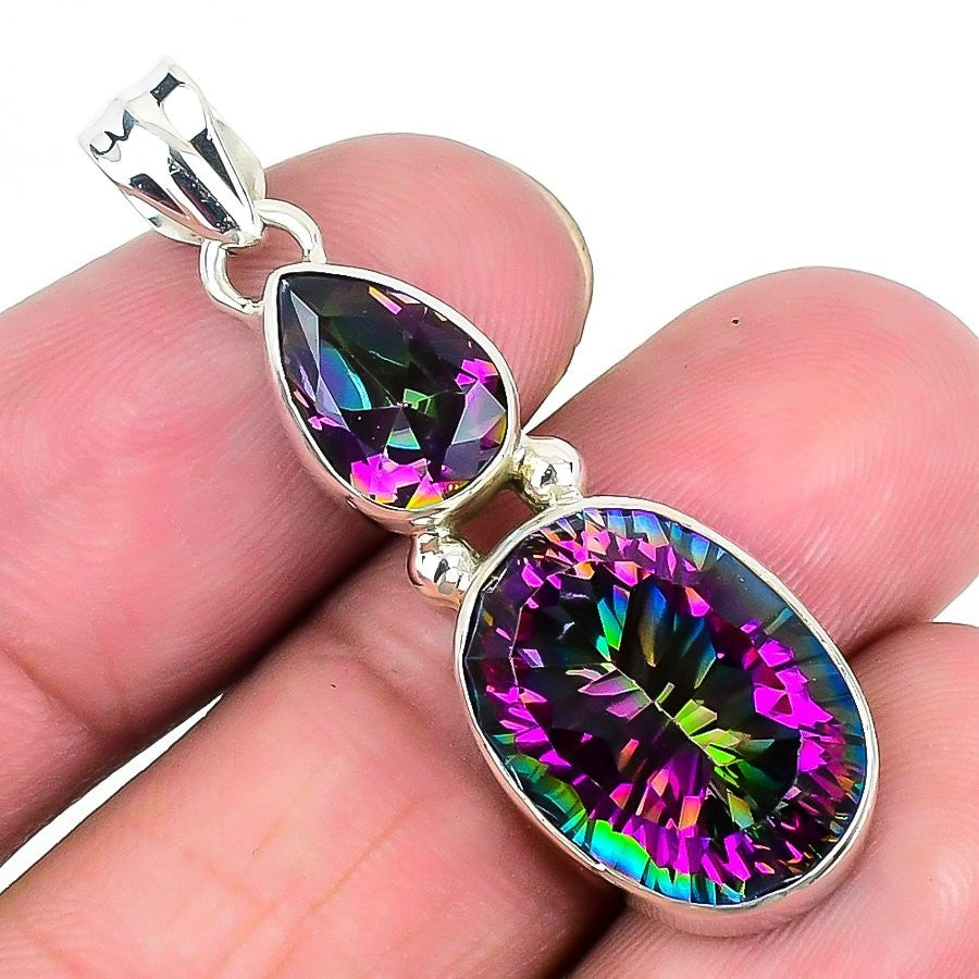 Mystic Topaz Stone 925 Silver Friendship Day Engagement Sister Pendant Jewelry