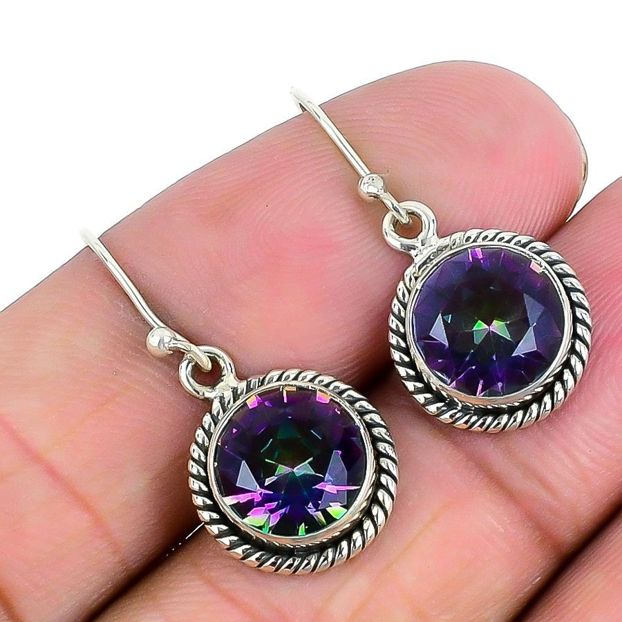 Mystic Topaz Stone 925 Solid Silver Dangle Drop Sisters Gift Earrings Jewelry