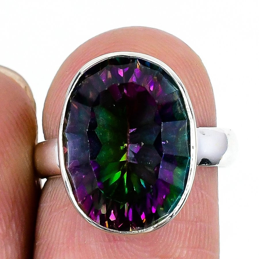 Mystic Topaz Stone 925 Sterling Silver Bezel Statement Sister Ring Jewelry US 7