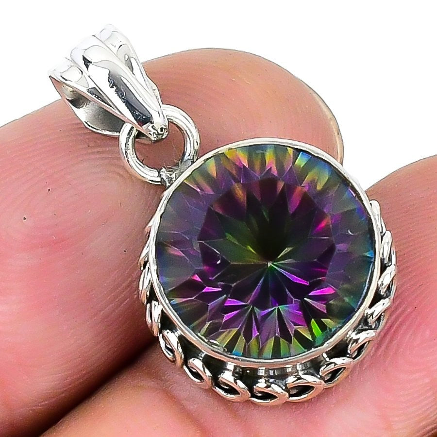 Mystic Topaz Stone Birthday Friend Gift Pendant Jewelry Solid Sterling Silver