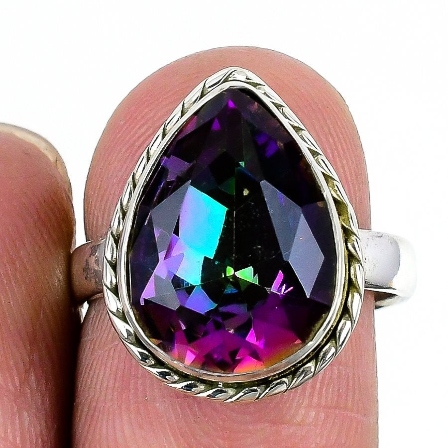 Mystic Topaz Stone Elegant Statement Sister Ring Jewelry Size 7.5 Solid Silver