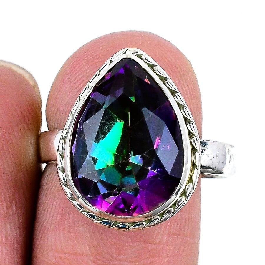Mystic Topaz Stone Ethnic Artisan Wife Statement Bezel Ring Sterling Silver US 9