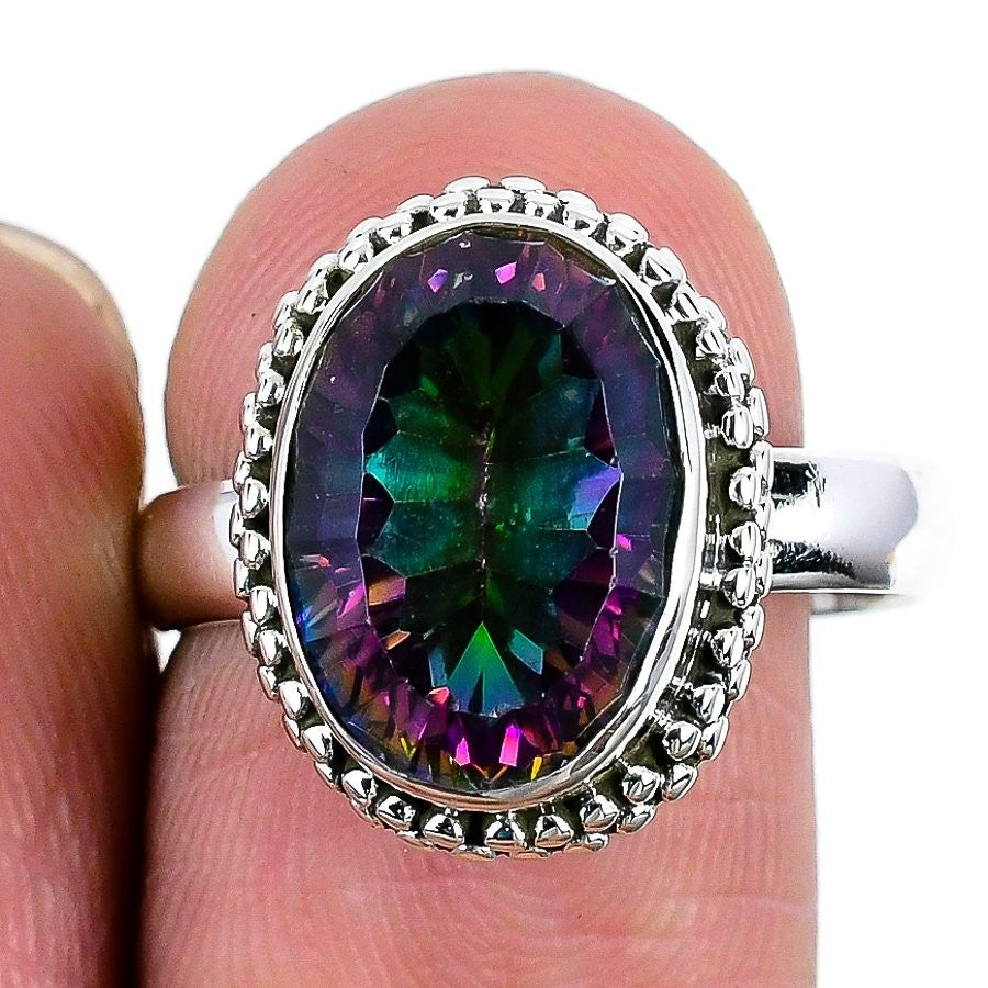 Mystic Topaz Stone Statement Artisan Daughter Gift Ring Size 8.5 Solid Silver