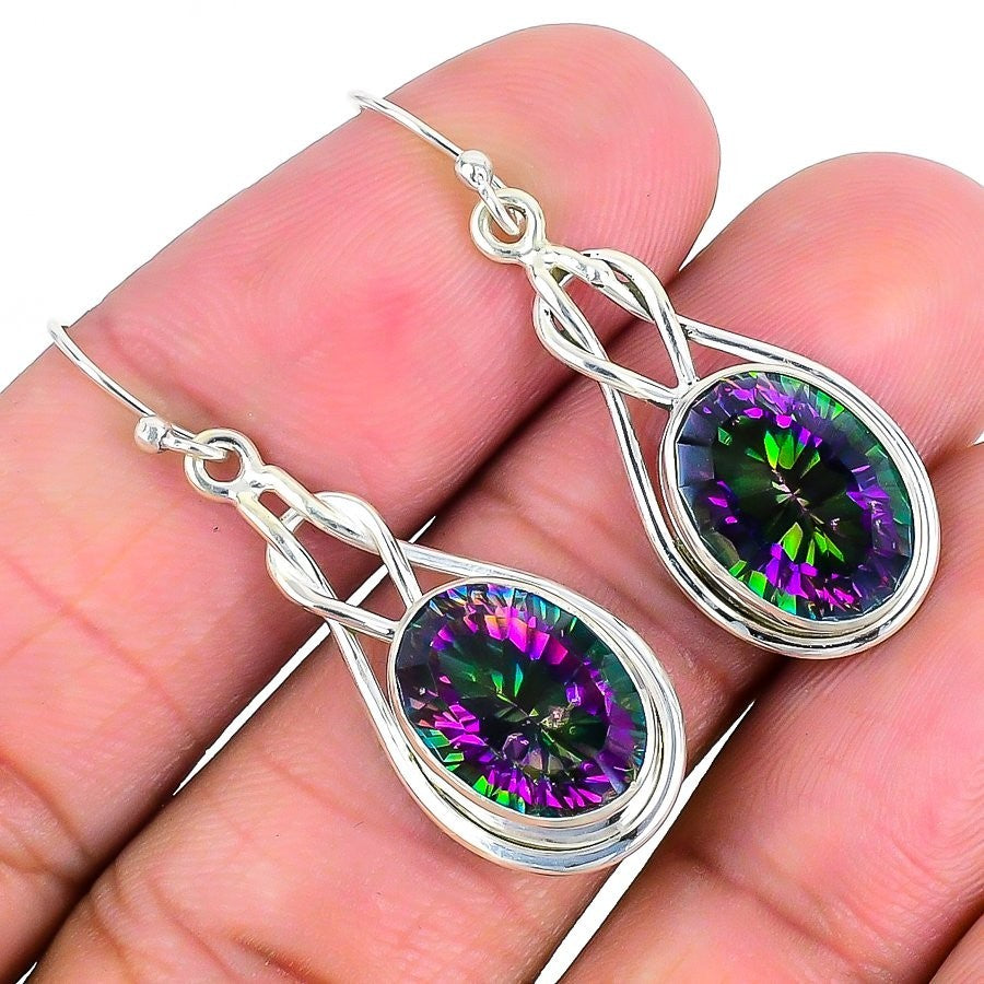 Mystic Topaz Stone Sterling Silver Drop Dangle Hook Ethnic Trendy Wife Earrings