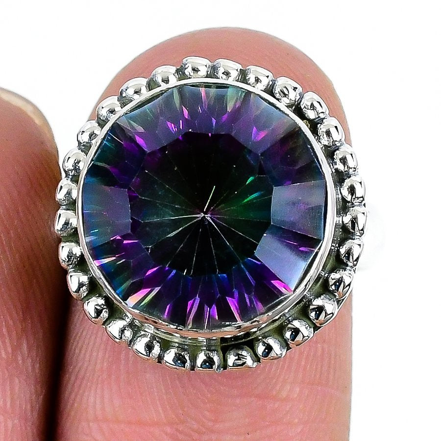 Mystic Topaz Stone Sterling Silver Wedding Statement Mother Elegant Ring US 6.5