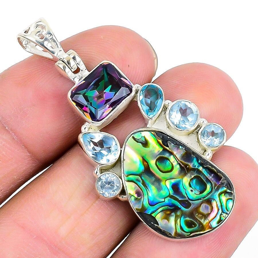 Natural Abalone Shell Solid Silver Wedding Memorial Day Birthday Pendant Jewelry