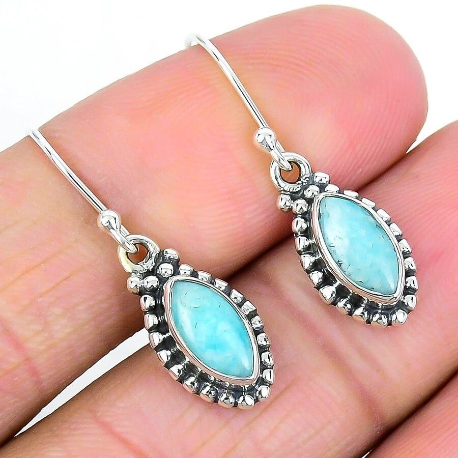 Natural Amazonite Solid Sterling Silver Trendy Hook Drop Dangle Earrings Jewelry