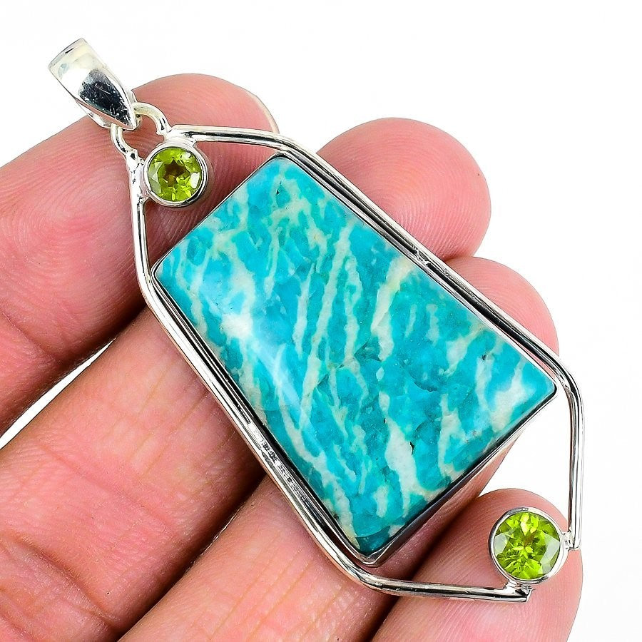 Natural Amazonite Unique Wife Art Deco Birthday Pendant Jewelry Sterling Silver