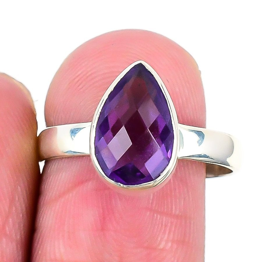 Natural Amethyst 925 Silver Boho Cluster Anniversary February Birth Ring Jewelry