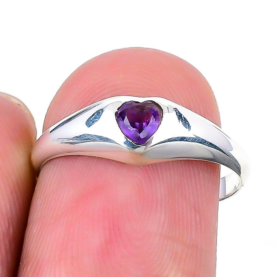 Natural Amethyst 925 Solid Silver February Birth Handmade Statement Ring Size 8