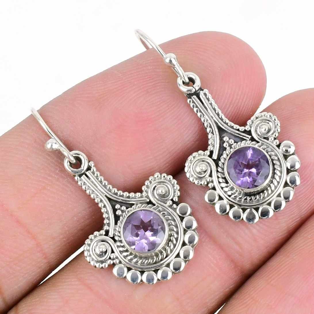 Elegant Natural Amethyst 925 Solid Silver Hook Birthday in 9